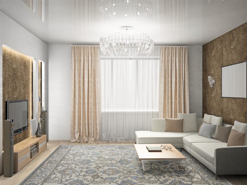 Lighting design of the living room 18 square meters. m often relies on a combination of lighting devices of different types.