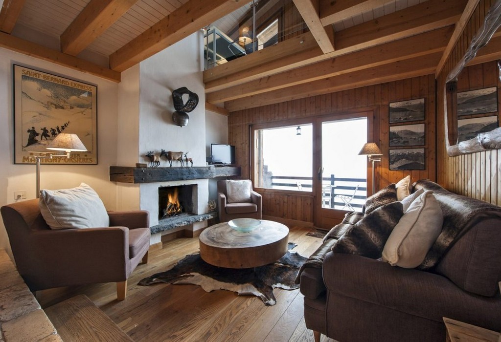 - Fireplace as the main element. The whole interior arrangement is played around the fireplace, next to which neat logs are harmoniously laid.