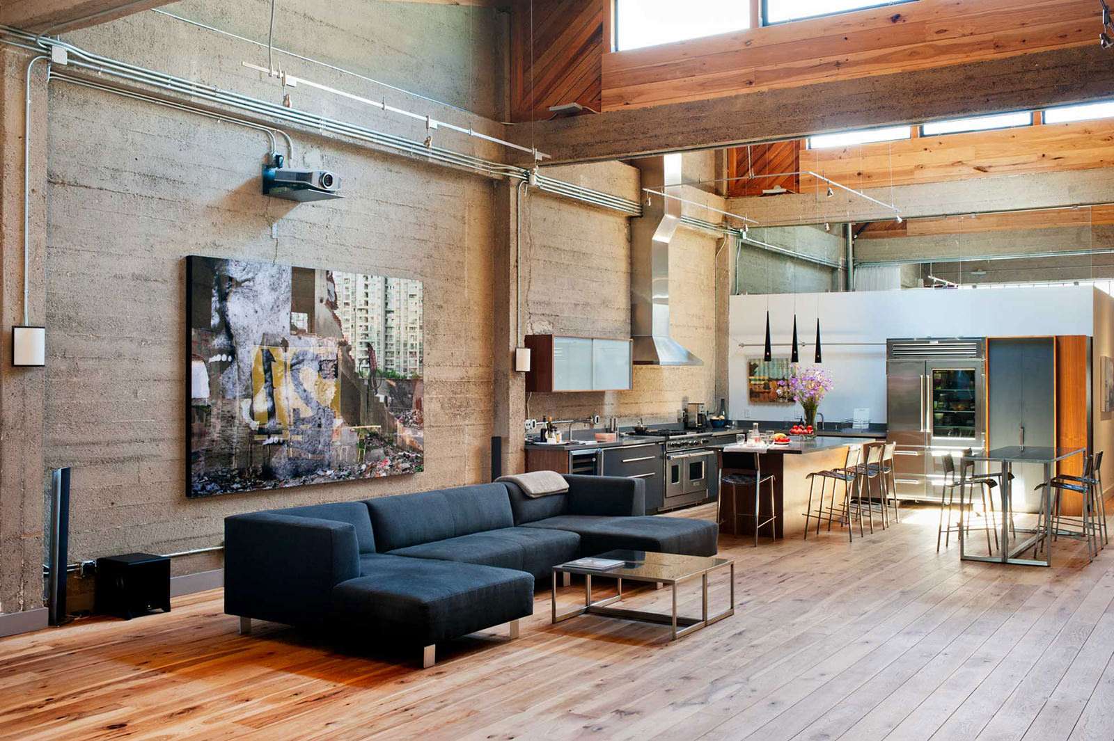Modern living room in a two-story house