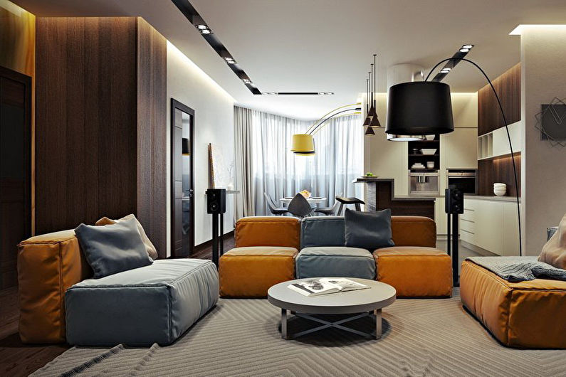 Sometimes the living room is not only a place for friendly or family gatherings. This area has to be combined with a study, kitchen or bedroom. In order for it to perform its functions correctly, it is necessary to adhere to some design rules.