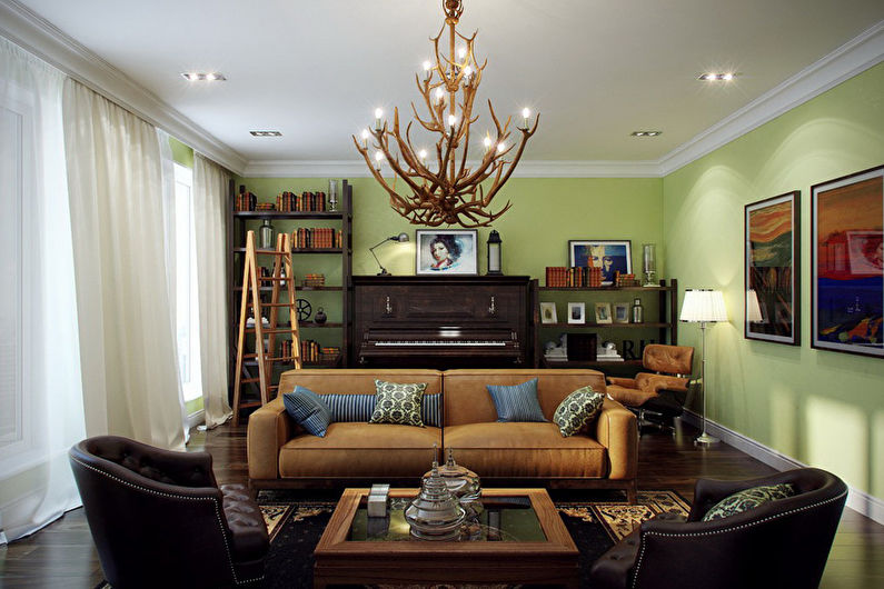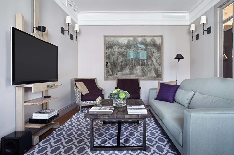 In this case, any design of the living room is suitable. The main thing is that it looks harmonious, and creates a full-fledged picture.