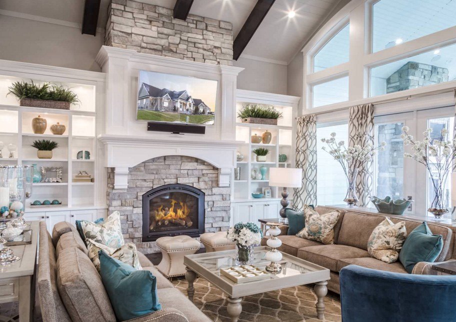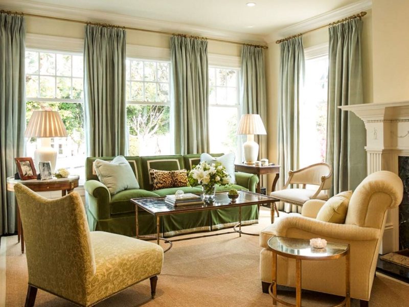 The colors and shades in which the room is decorated should overlap with each other. Suppose you choose upholstered furniture in a light green hue. So that it does not look foreign in the living room, pick up curtains for windows of the same color. Or decorate the room with light green tabletop vases and other interior details. But remember, everything must be in balance. Do not litter the room with a large number of accessories.