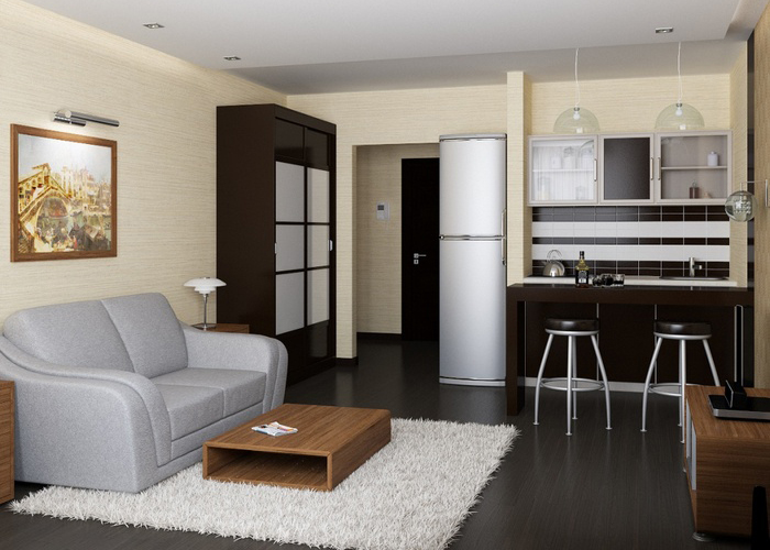 During repair one-room apartment if you have purchased furniture, you must first create (draw) a conversion plan so that upholstered furniture, cabinets, and cabinets harmoniously fall into place. Another option is also possible - the purchase of furniture after repair. At the same time, it is very likely that it will have to be made to order or “customized” sizes according to individual requirements.