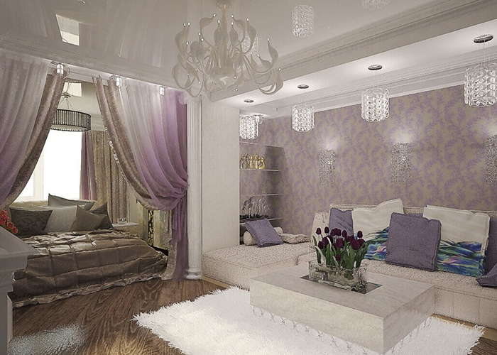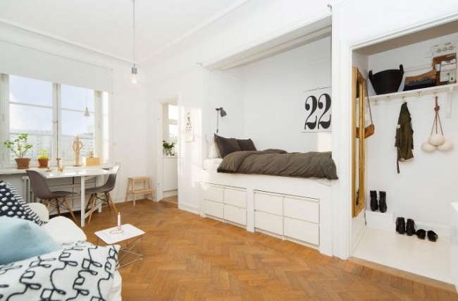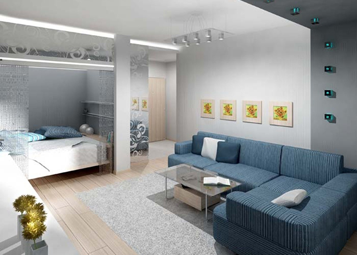 Often one-room apartment enough for a comfortable stay of one or two people, but if you properly arrange special formations in the form of partitions, niches, you can create a cozy atmosphere for a family of three or four households.