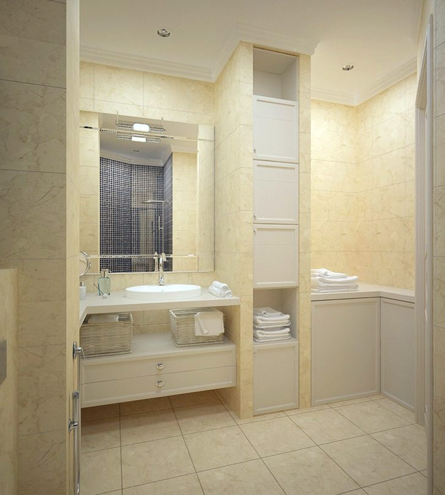 It is advisable to equip the deepening in the walls of the bathroom under the shower area with a bathtub.