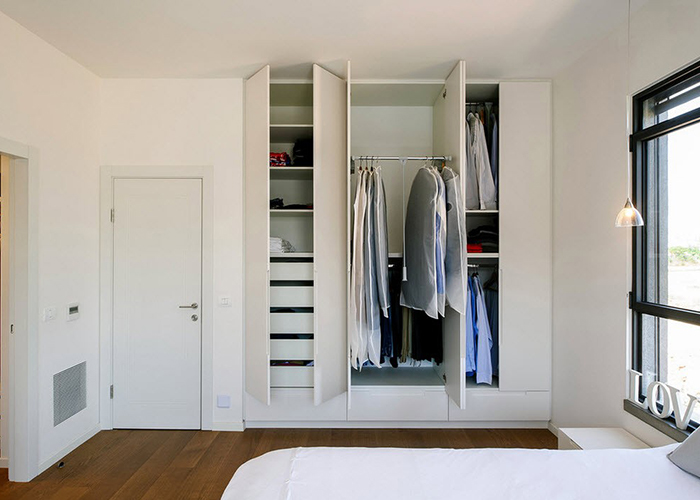 - Close the recess with a pair of doors, forming inside a closed cabinet for storing clothes, dishes or personal items.