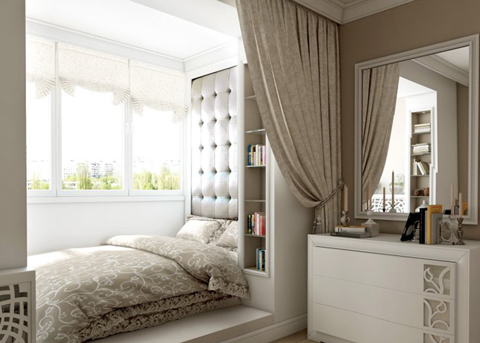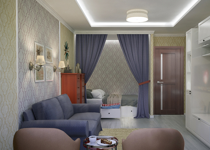 Special recess in the wall one-room apartment hundreds of years ago they called it the unusual word "alcove." At the time of the monarchs it was decorated with textiles, as if creating a lush fabric partition. Today, this option is also possible if the alcove has a sufficient width - 1.7-2 m.