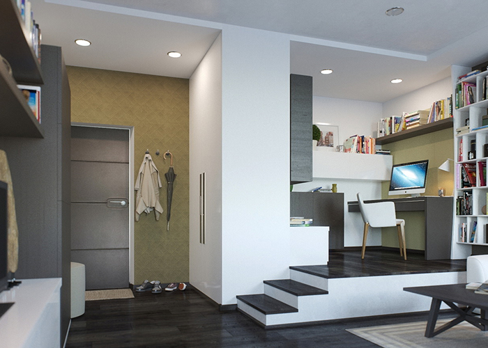 Properly equipped interior of a studio apartment not only will cause emotions of admiration among the guests at home, but will also improve the condition and mood of all households. All this is due to the fact that the additional space will become a place to store parts that previously cluttered the house.