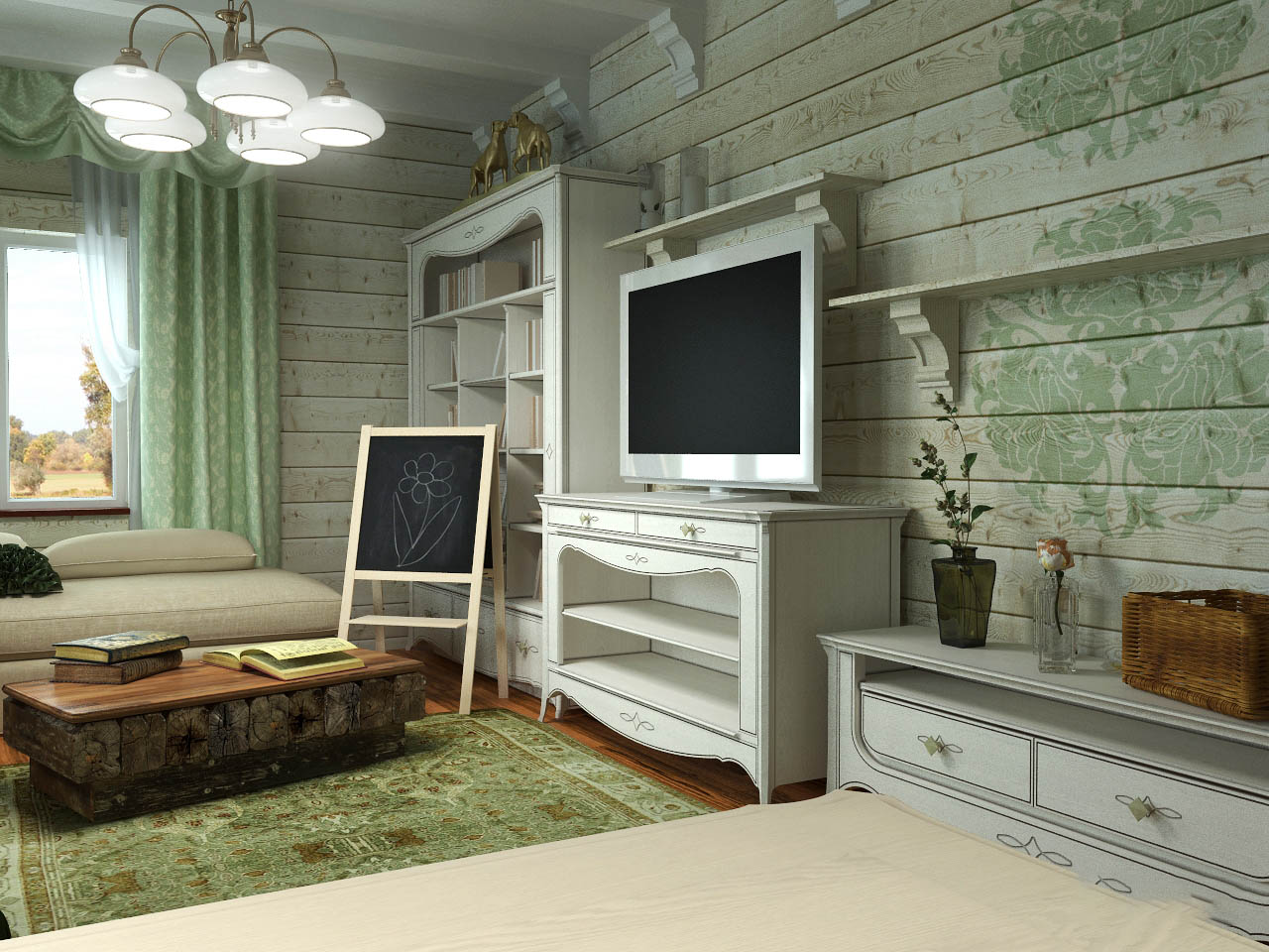 | Country | Embodies traditional rustic motifs in tandem with modern functionality. It is necessary to use details reminiscent of the atmosphere of the village, more wood and natural materials. |
