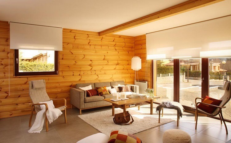 Due to the large selection of specialized impregnations for wood, almost any interior style is equipped in such a house. French "Provence" for the kitchen, Italian "Modern" for the living room, "Scandinavian" style for the restroom - with the right choice of shade of paint or impregnation, you can finish the room even under "Hi-tech".
