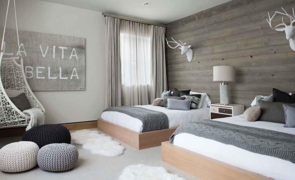 The style is characterized by wooden wall and floor decoration