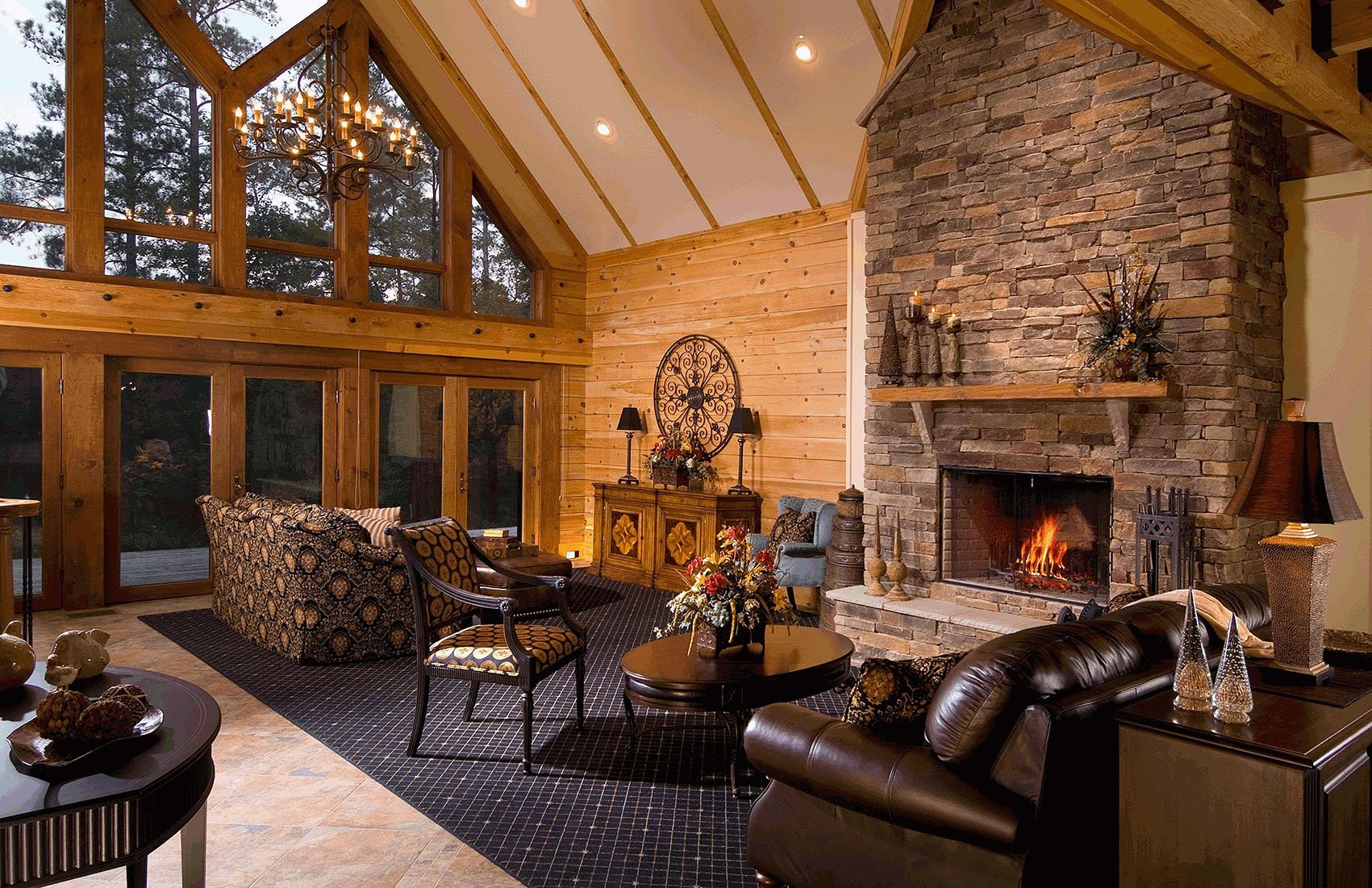 Panoramic windows of the living room will be a unique addition to this type of decoration. If your cottage was built according to all the rules of American construction, then the window will be huge, majestic in size.