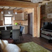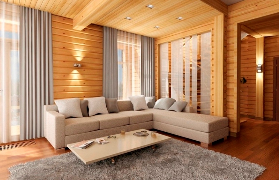 The interior of the house made of timber is very environmentally friendly. This is the main advantage of such a structure. With the right step-by-step approach, it will be possible to organically diversify the rooms of the house. All shortcomings easily turn into advantages.