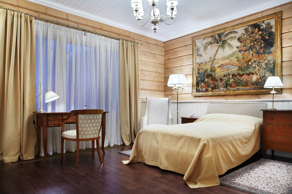 The walls of the bedroom can simply be coated with colorless varnish