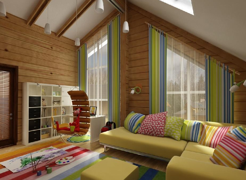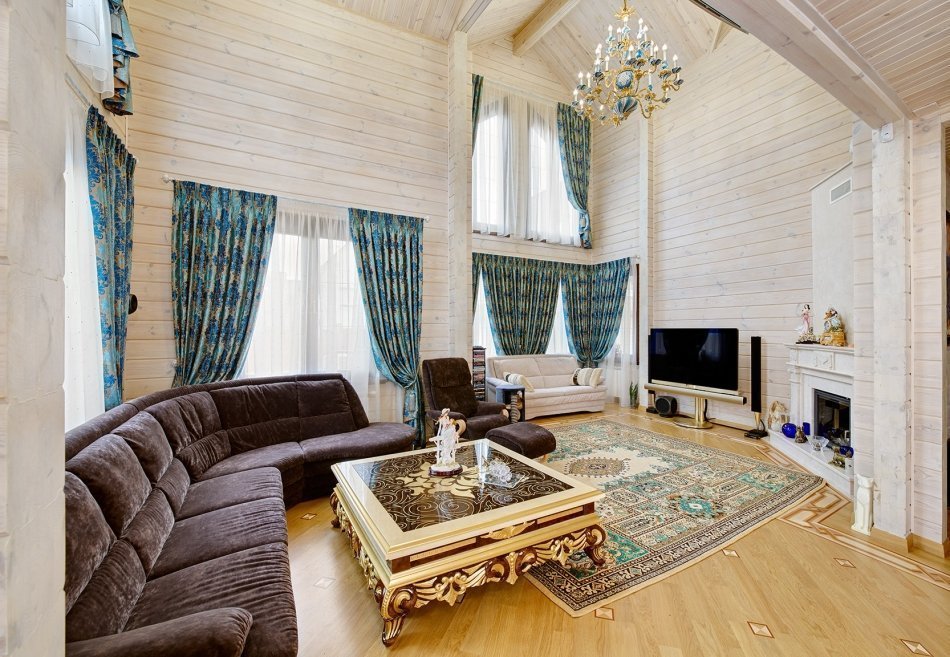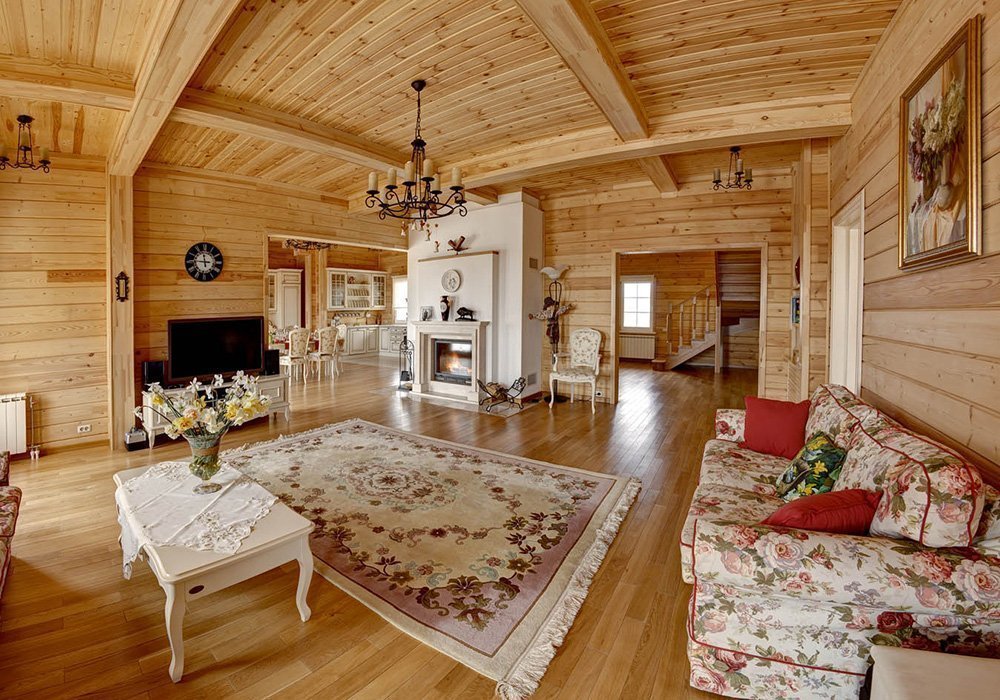 With a competent approach, the interior of a house made of glued beams is a source of positive emotions and calm