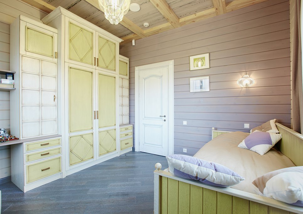 The bedrooms are decorated in soothing colors. Olive shades will help to relax after a long hard day. Each room can be painted with different color palettes. It is not necessary to finish the whole house in the same style.
