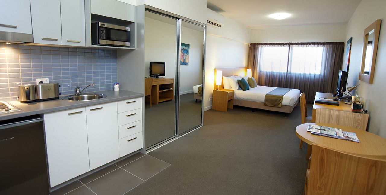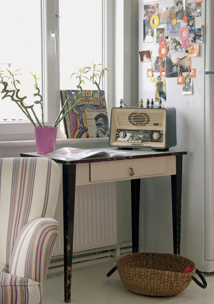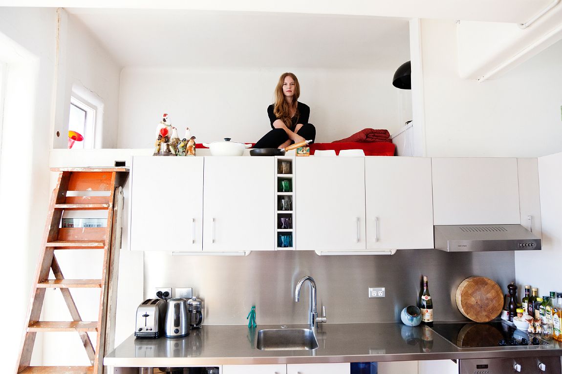 This small room has everything you need: a living room, a kitchen, a bedroom and even an office.