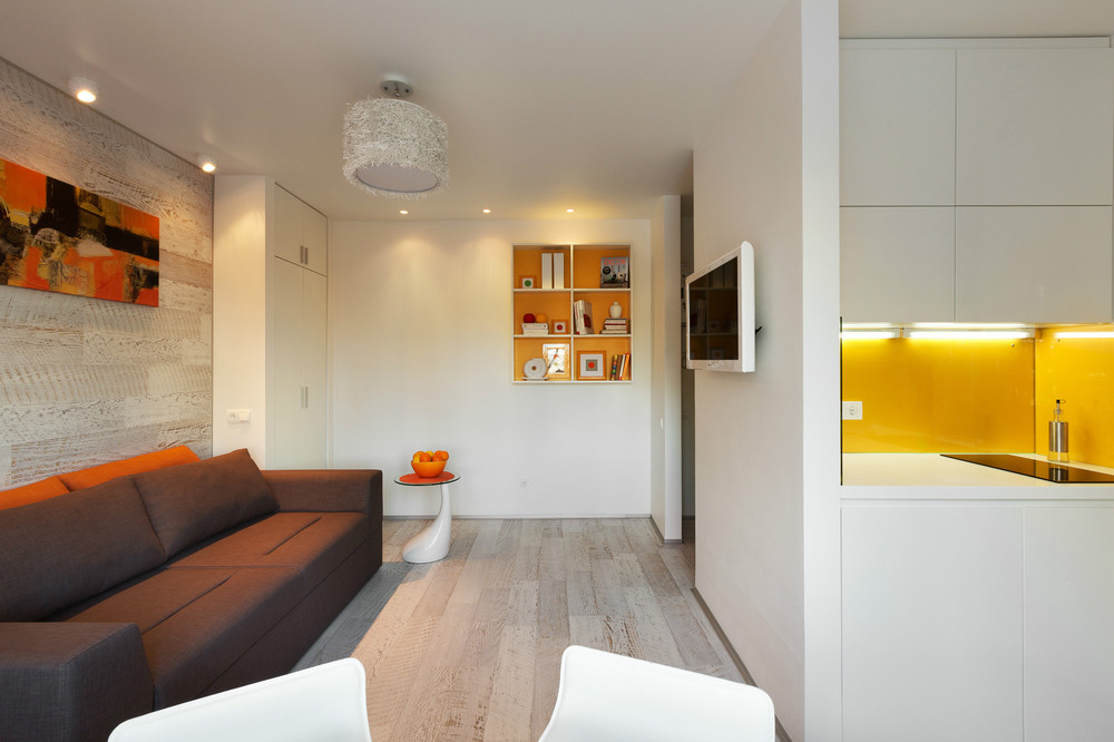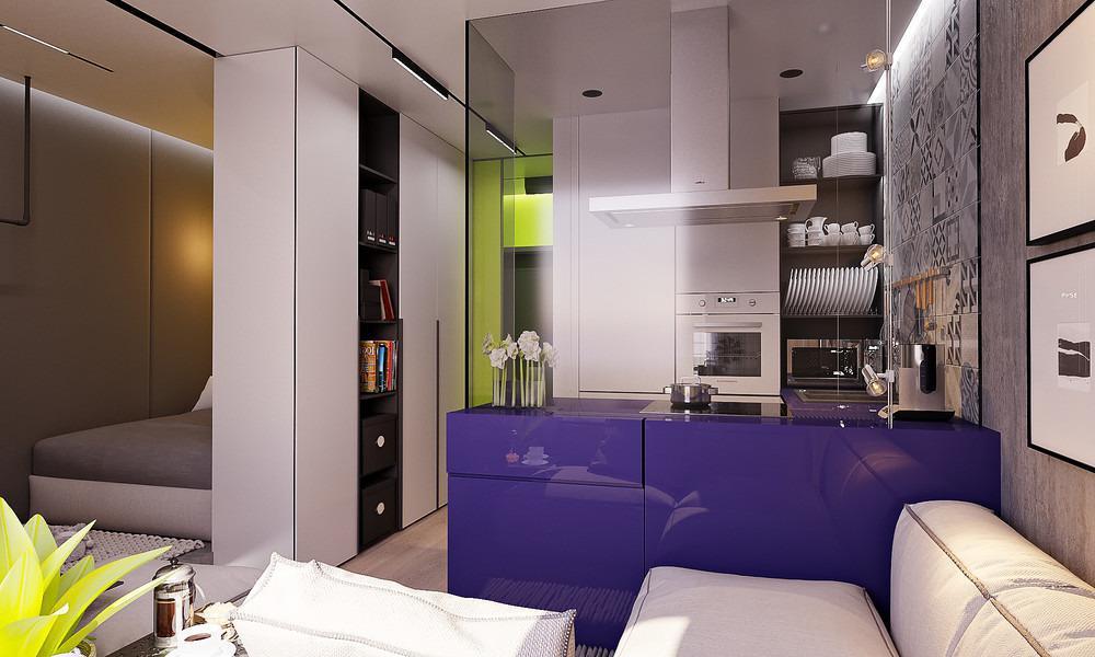 Currently, studio apartments of any size are becoming an increasingly popular type of housing. A few years ago - it was the most inexpensive type of real estate, but now they are being purchased not only because of its value. An open space without walls and partitions provides the owner with the opportunity to arrange it as you wish, realizing your wildest dreams and fantasies, using at the same time every free centimeter.