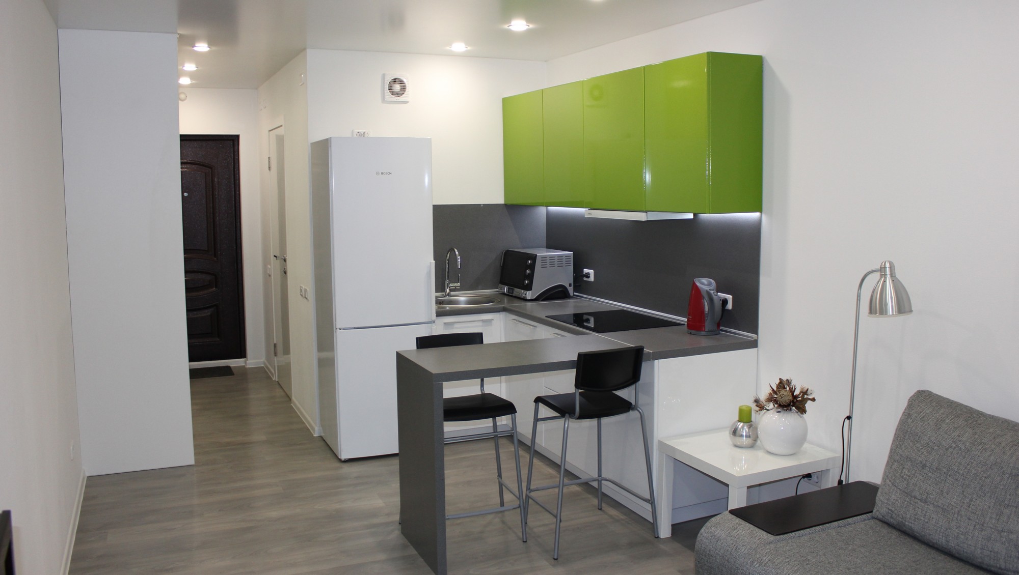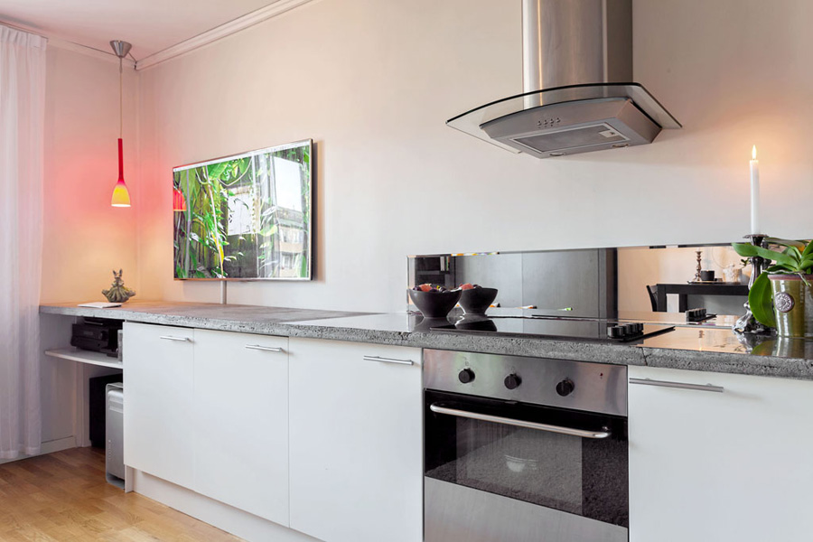 The presence of a hood in a studio apartment is required. It will quickly remove all unnecessary odors, particles of fat.