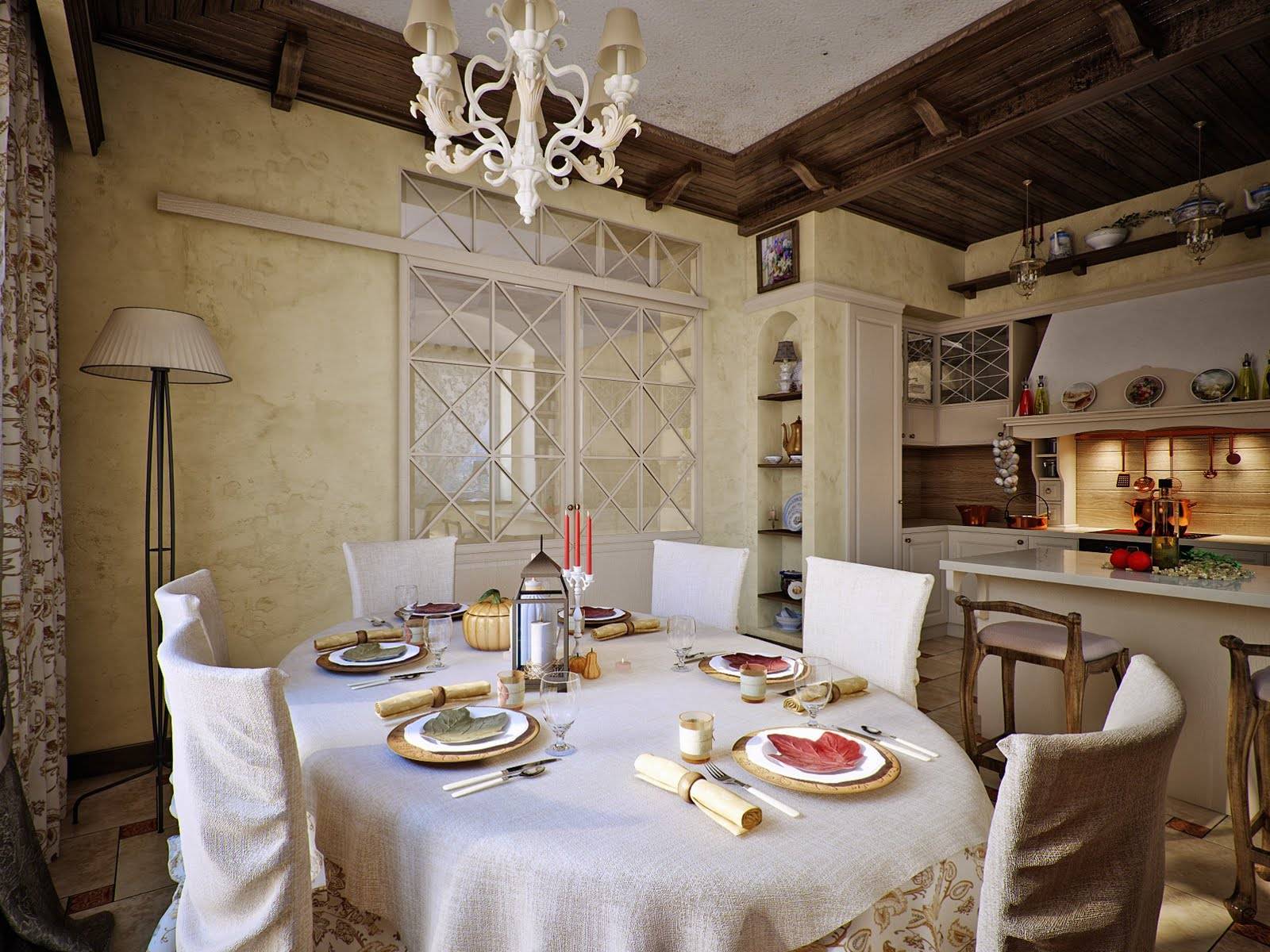 The motives of Provence, the embodiment of the spirit of provincial France, dominate here. Cream tones complement unvarnished light furniture, carefully polished and with lace napkins. The walls are decorated with paper wallpaper and stucco.