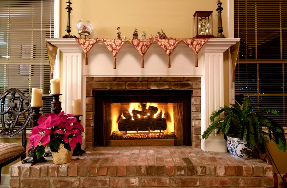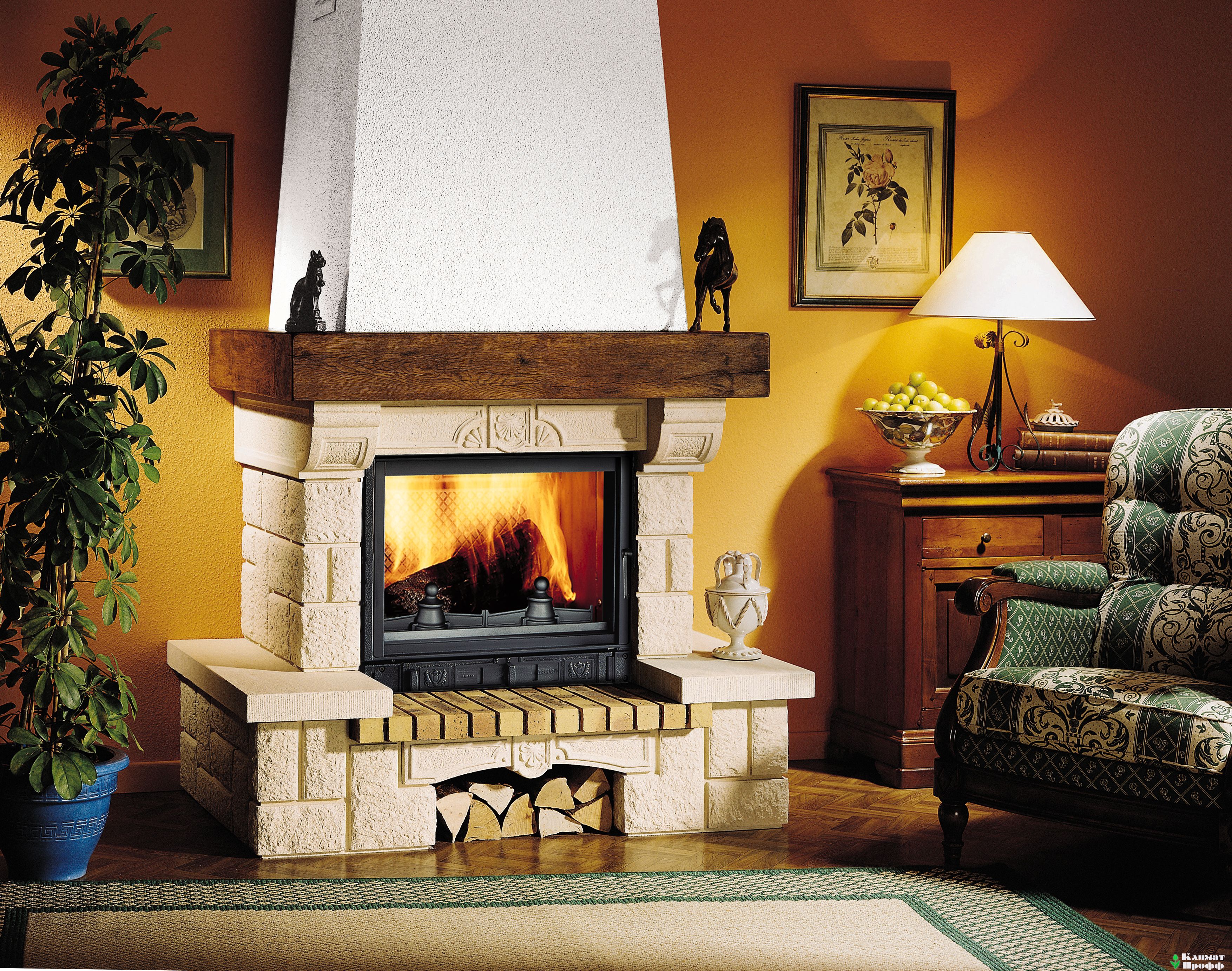 Room interior with fireplace