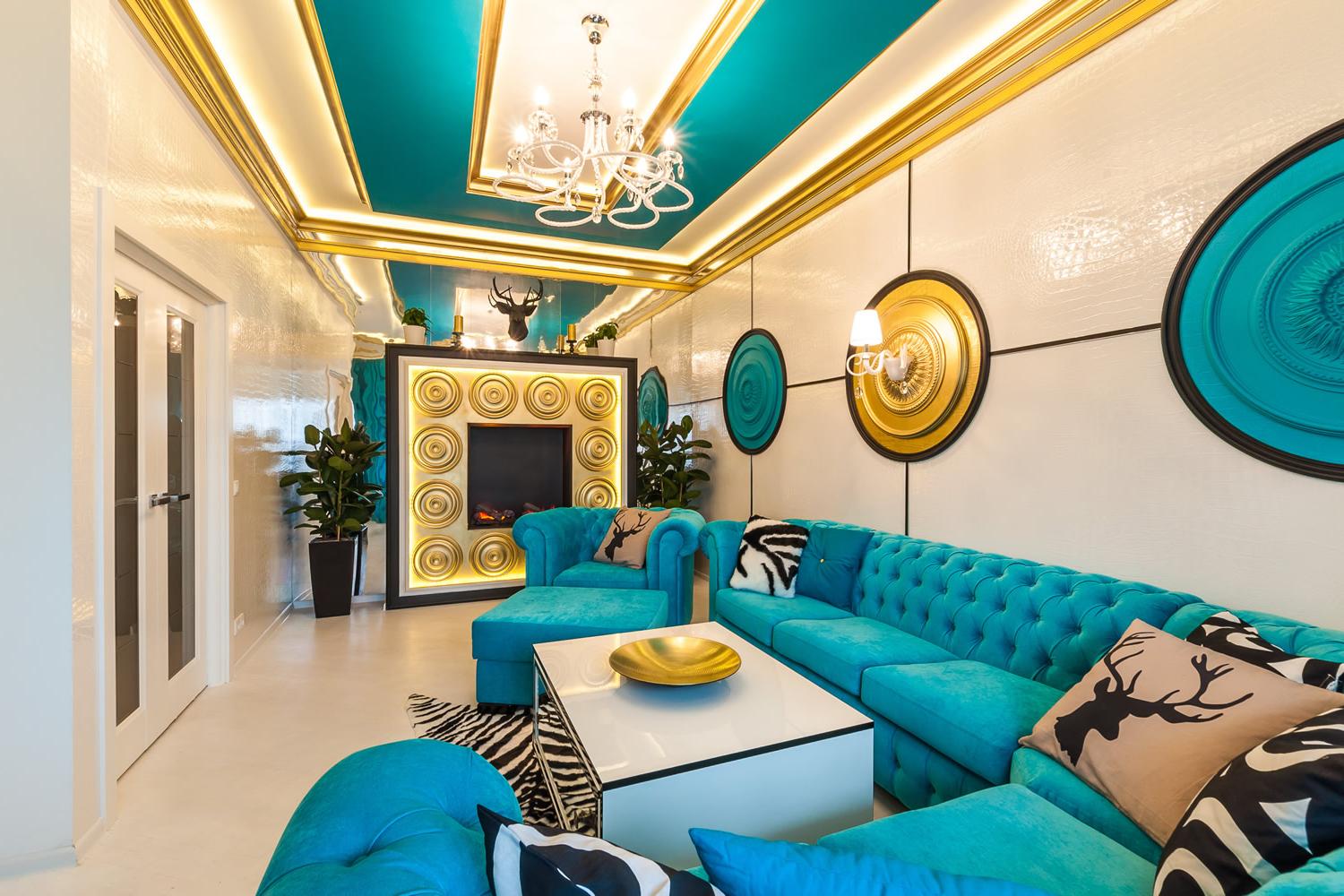 Pseudo-luxurious kitsch in the design of the living room