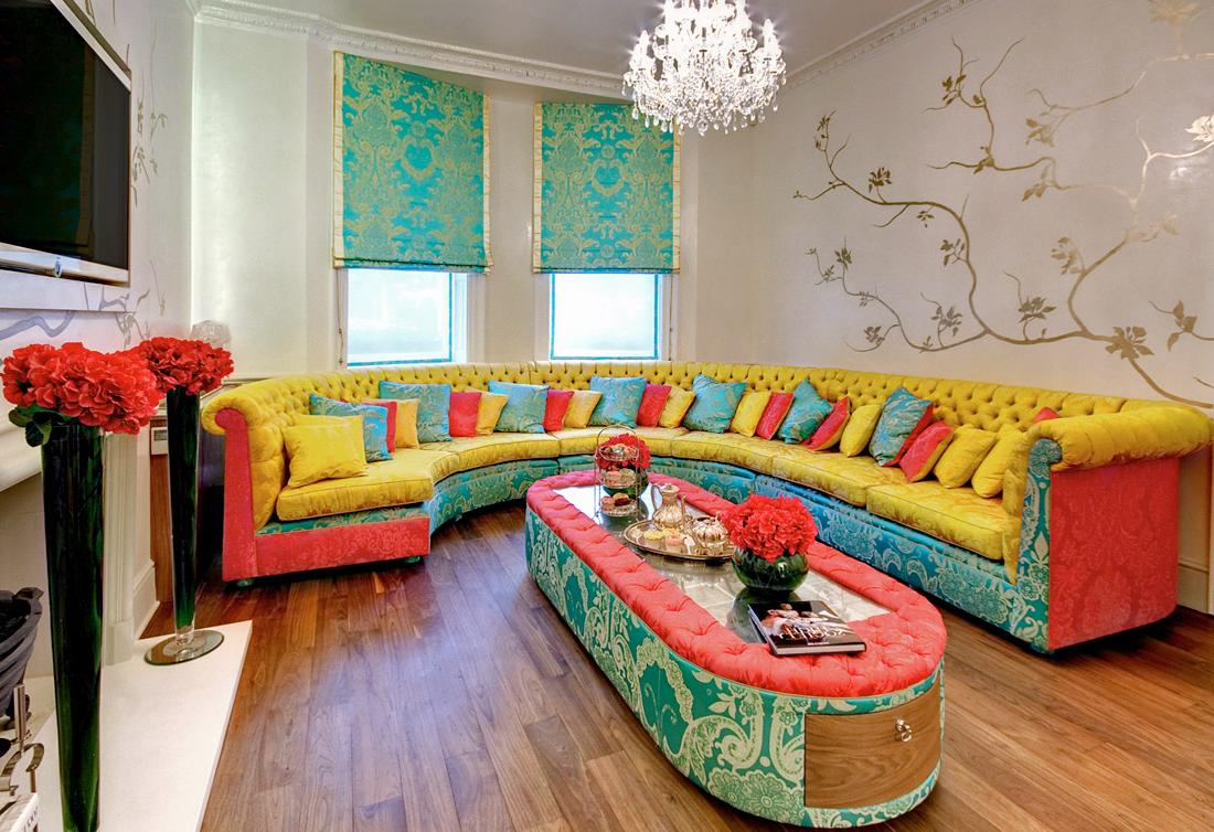 Indoors, everything should be excessive - color, decorations and furniture