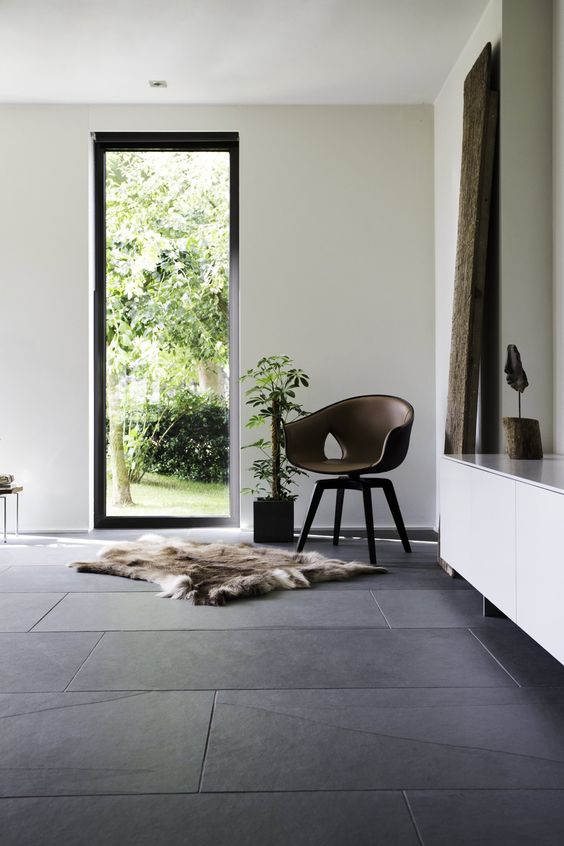 The gray floor itself is not an accent due to the neutrality of the color itself, it is as if it offers to look at other objects of the environment: walls, windows, furniture, etc.