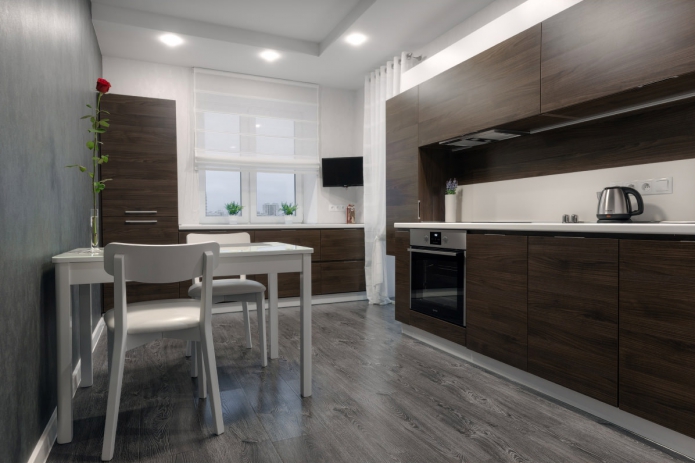 | Light coloured tone gray laminate appropriate in small rooms | It will visually expand the space. |