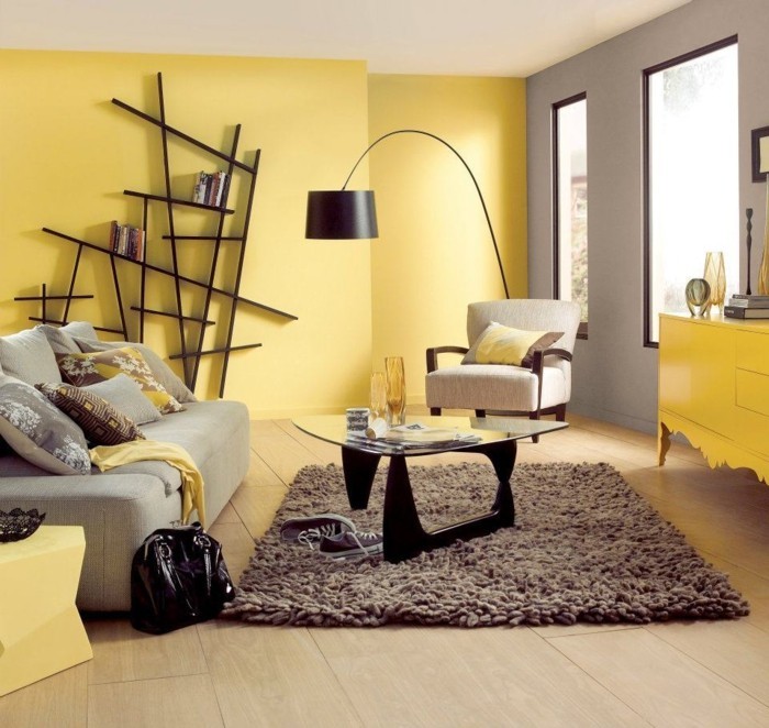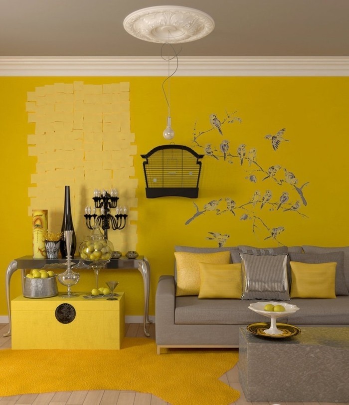 - Living room is not a place where diversity is appropriate. Noble tones are suitable here, including lemon, sand and honey. However, experienced designers find worthy use even of bright yellow furniture in the interior of the guest room.