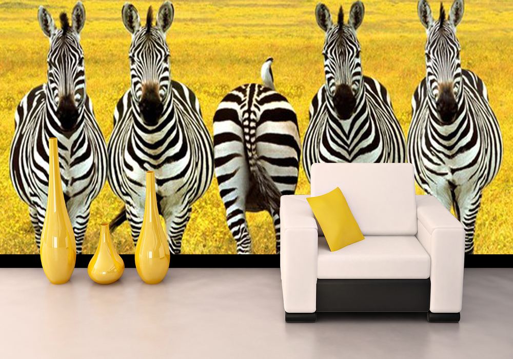 Wall murals with a huge yellow flower are suitable for the modern solution. He will decorate the white wall at the head of the bed, making the room more extravagant, as in the photo.