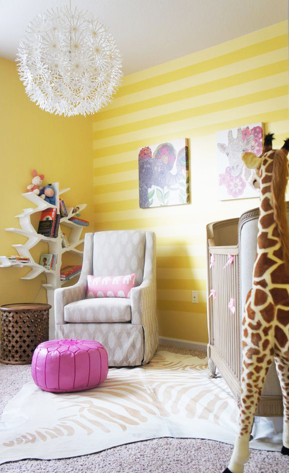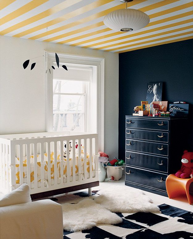 - Bright yellow tones are suitable for a children's room - preschoolers love a radiant color. But it should not be in excess, choose one thing, for example, banana-colored furniture, curtains or a door, complementing with accessories and soft toys. Add the theme of the sun, dandelions or sunflowers - the room will immediately transform.