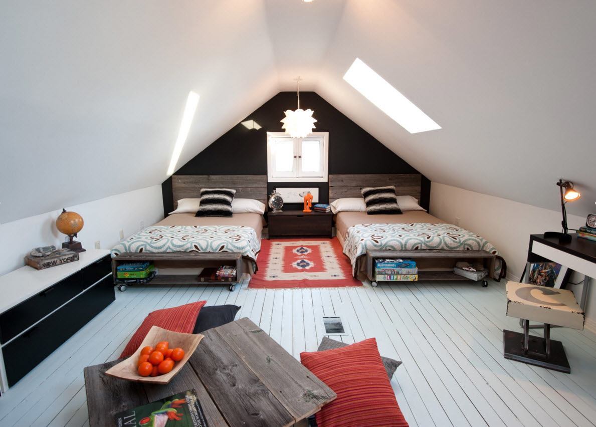 Best when equipped with this the rooms consult with an experienced craftsman, use only quality materials. Well-designed technical points make it possible to create further and create beautiful attic design.
