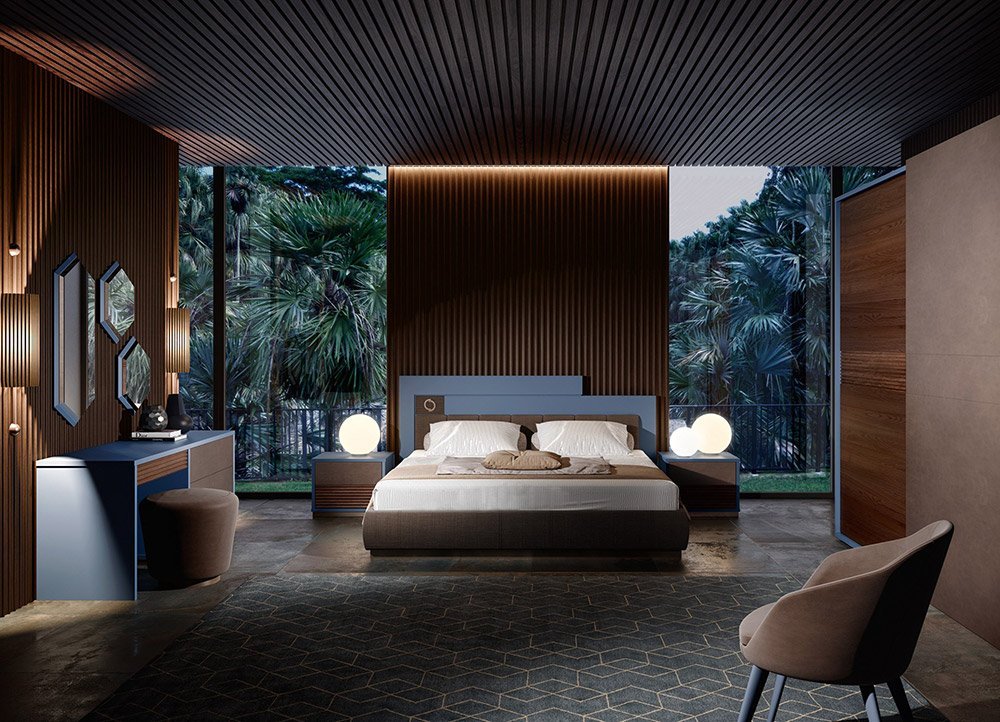 Panoramic windows in the bedroom interior
