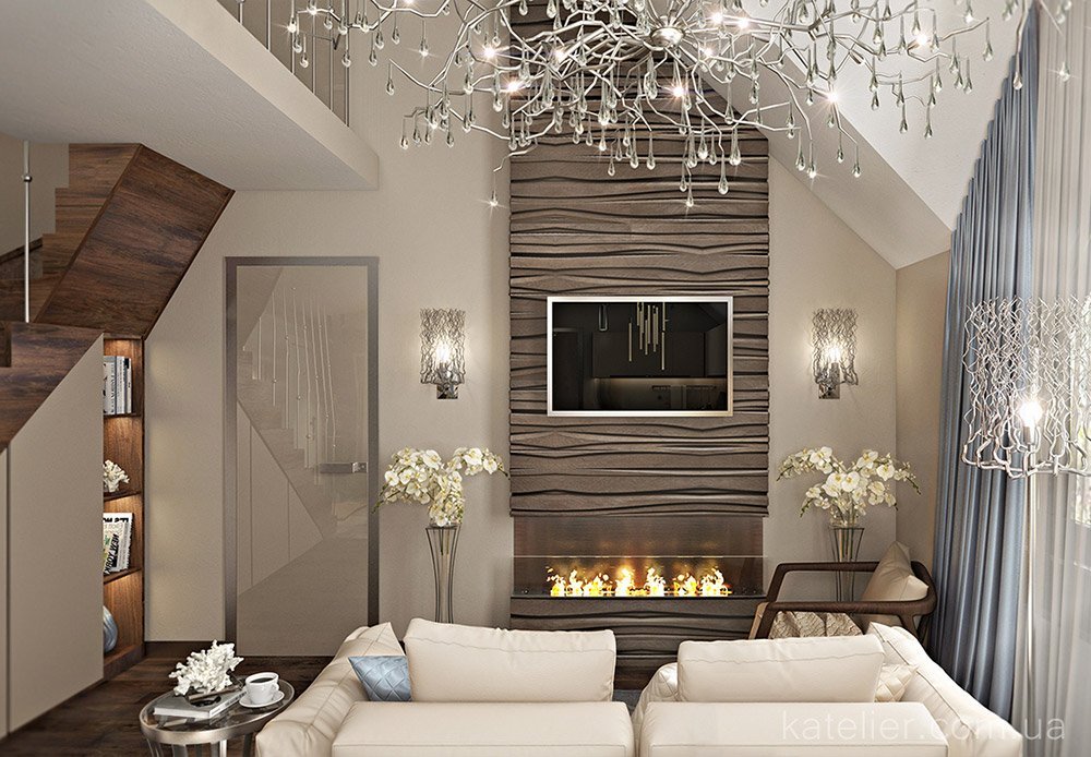 - Arrange a comfortable sitting area, with a large and comfortable sofa, electric or modern bio-fireplace (installed in apartments and houses), a fireplace (since installation in apartments is problematic, suitable for home interiors, have an attractive look and can warm in cold winters).