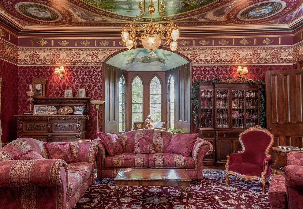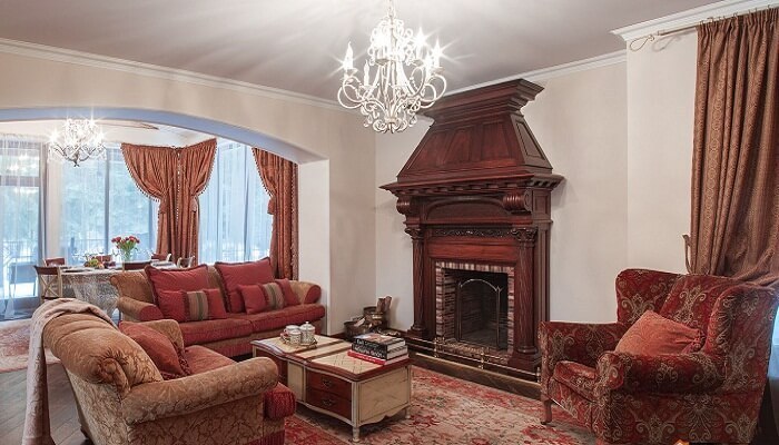 Crimson along with traditional is found in classics, baroque, and other historical directions. This is the color of kings and noble nobles. Together with brocade, velvet and other expensive heavy fabrics, you will be able to create a chic classic design.