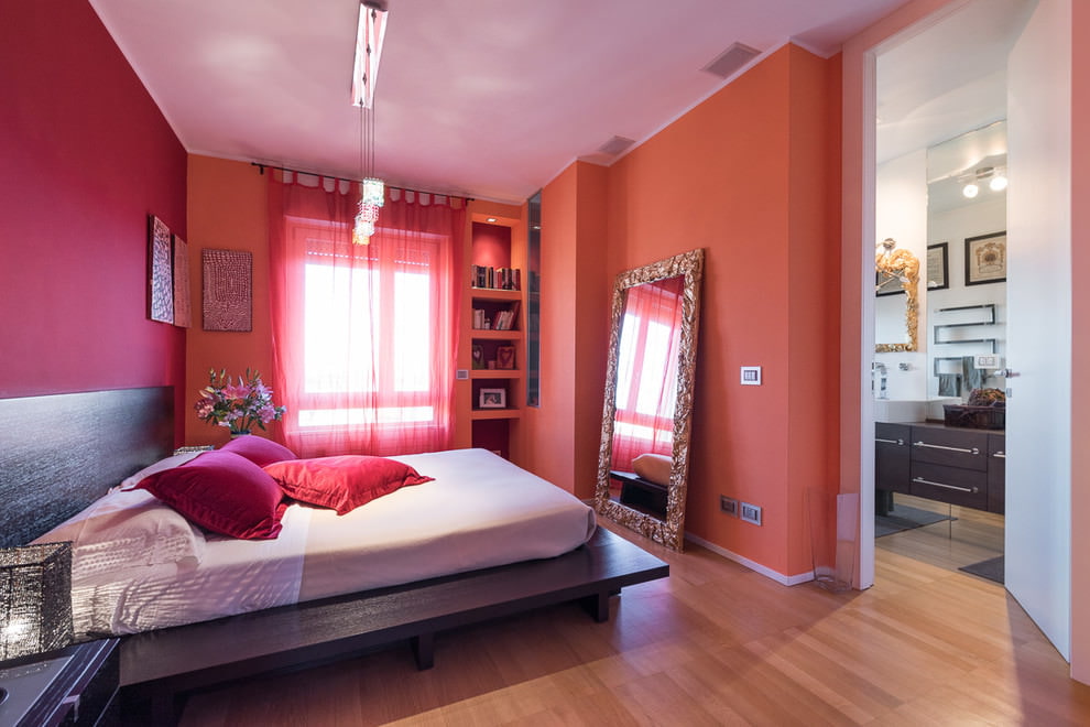 | Scarlet, fiery | Bedroom, living room | Minimalism, Art Deco |