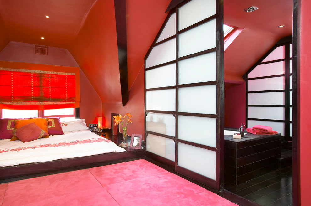 Red is a symbol of love and passion. It can excite an intimate atmosphere and bring to proximity. For this reason, it is used to design a sleep zone. Bed linens, pillows, paintings on the wall above the bed - all this can be involved.