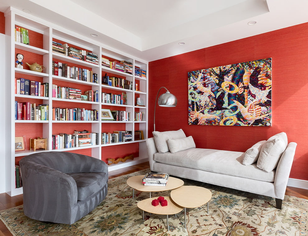The reverse technique “white on red” allows you to create a harmonious atmosphere, because white color is able to balance any interior