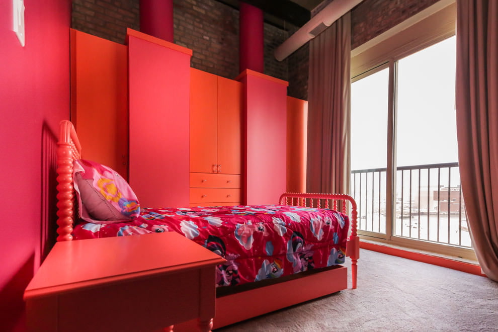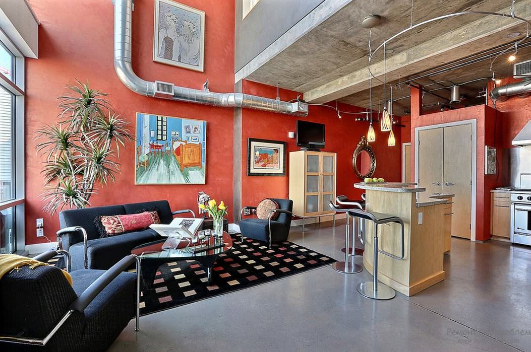 In a loft, a combination of red, gray, white and black in various proportions is appropriate