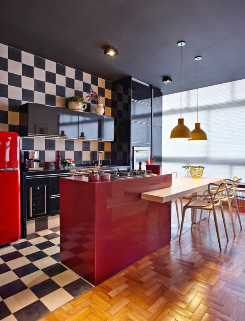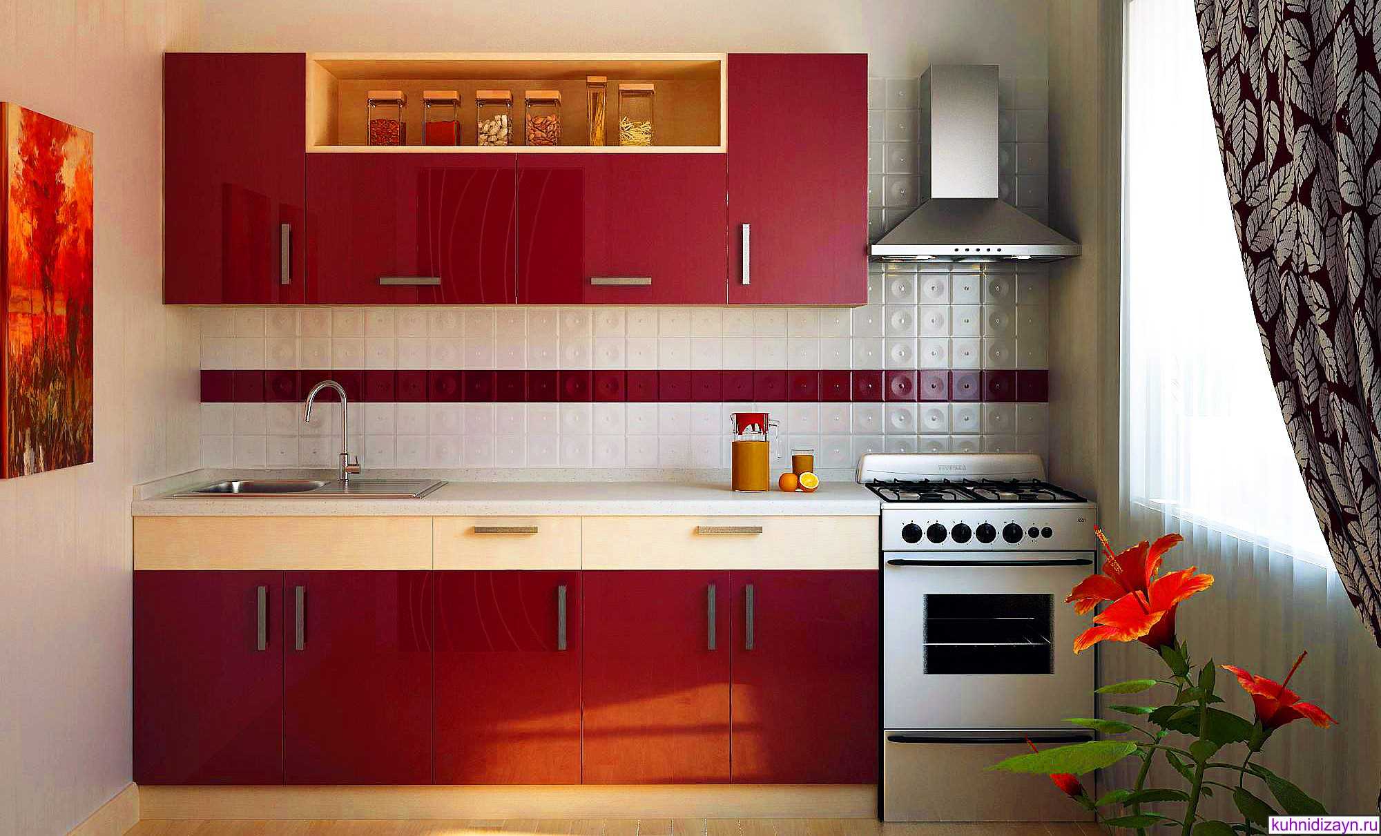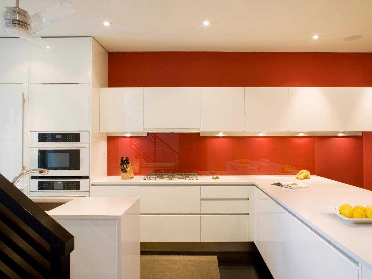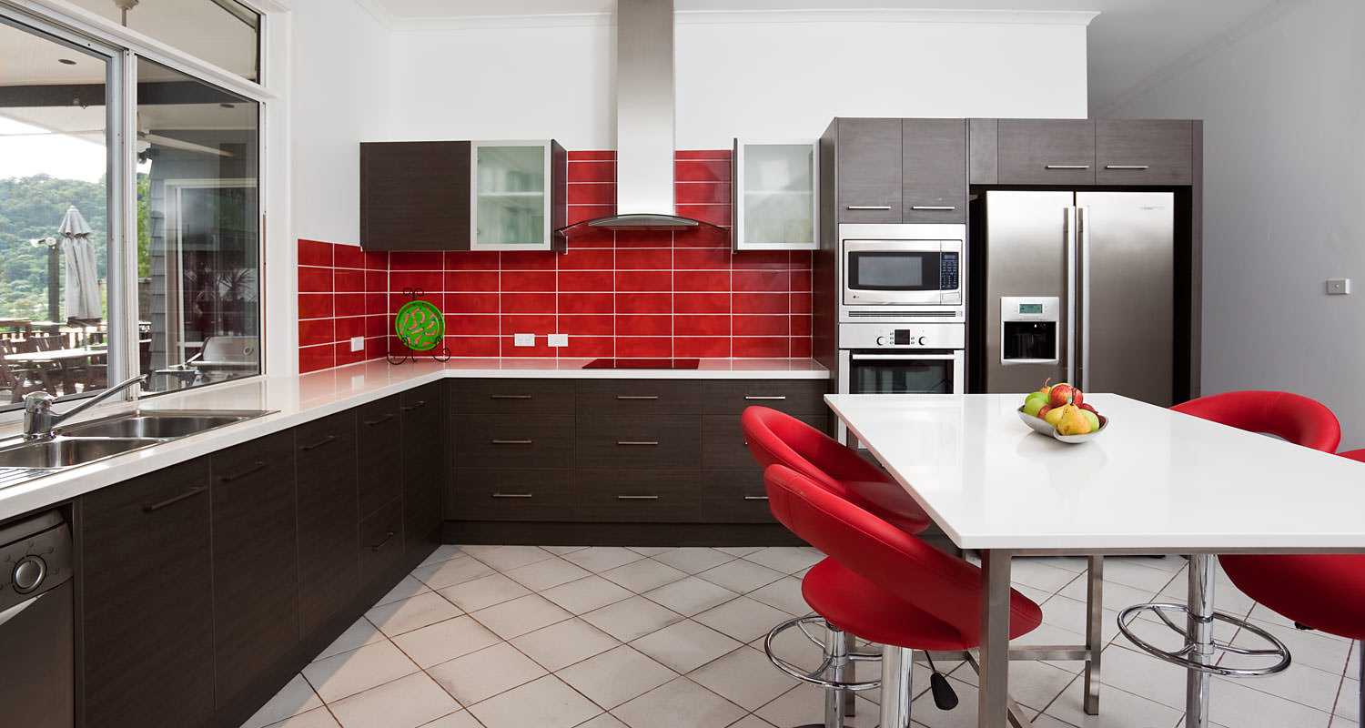 Red color in the interior of the kitchen