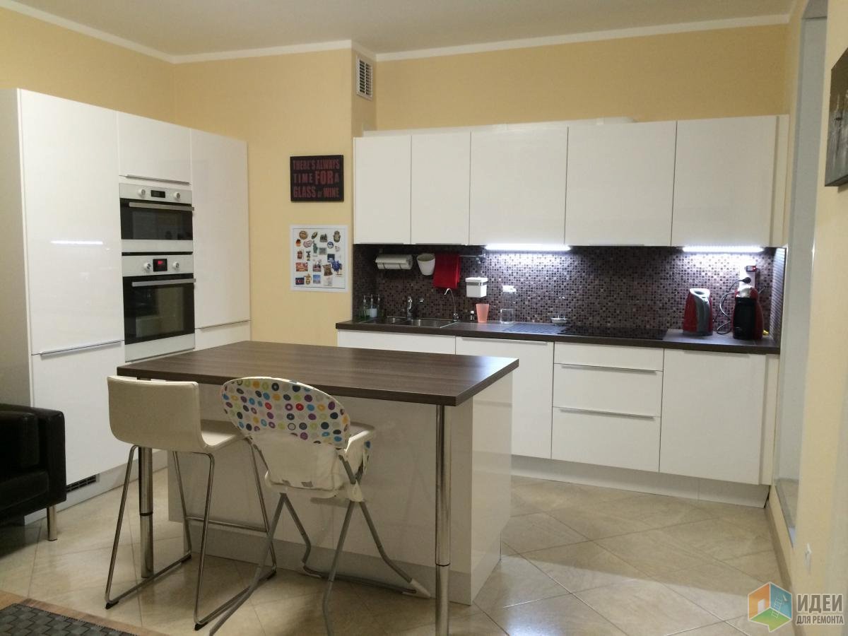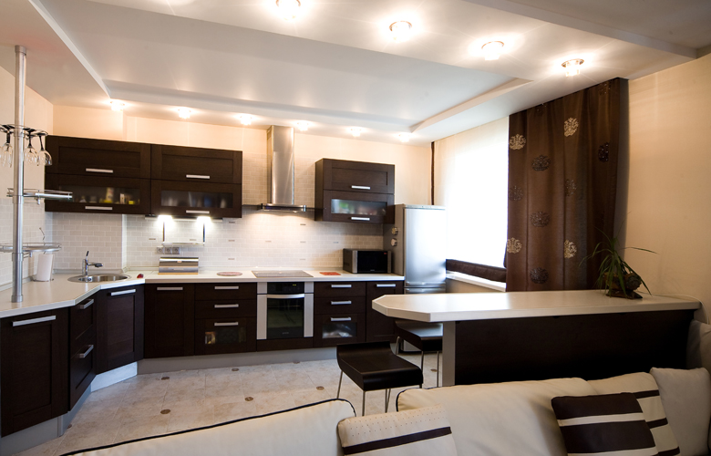 Peninsular view of the kitchen - the most common option for placing a breakfast bar