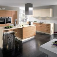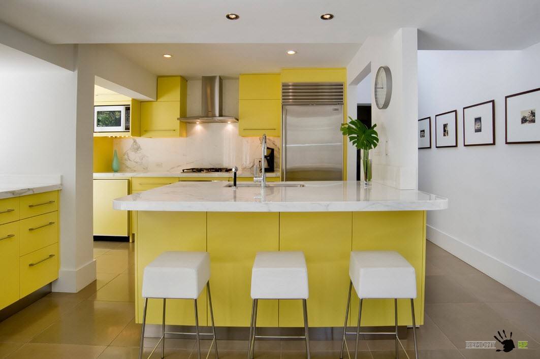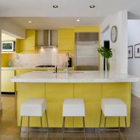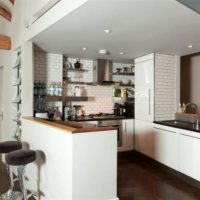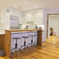 This model is used as a separate piece of furniture for the kitchen, regardless of the structural and functional elements. The classic interior of the kitchen with the same bar looks beautiful only in spacious rooms. Most often, it occupies the central part of the room and looks very expensive.