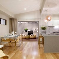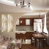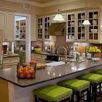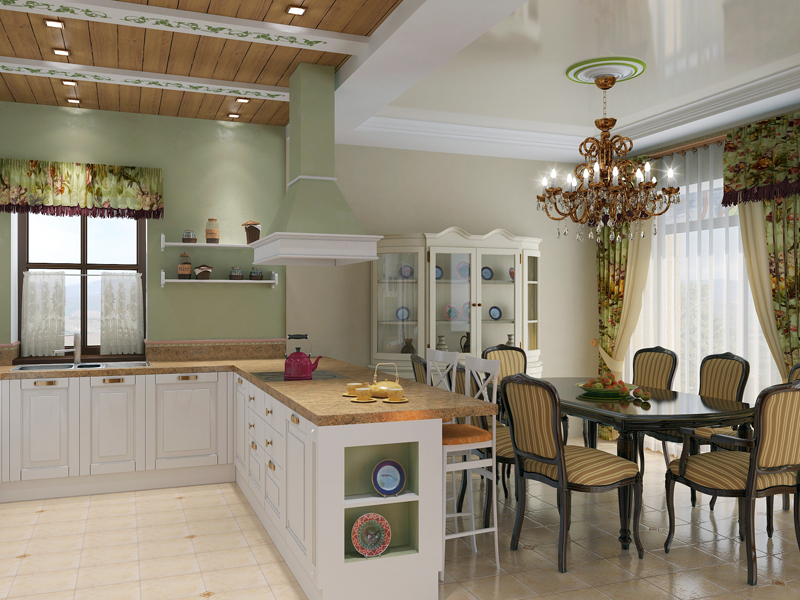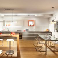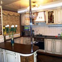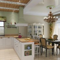It is equally appropriate in large areas, and in small kitchens. The room takes on a complete look, and the space becomes more comfortable.