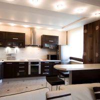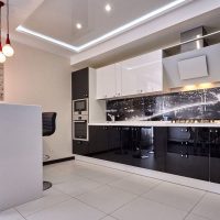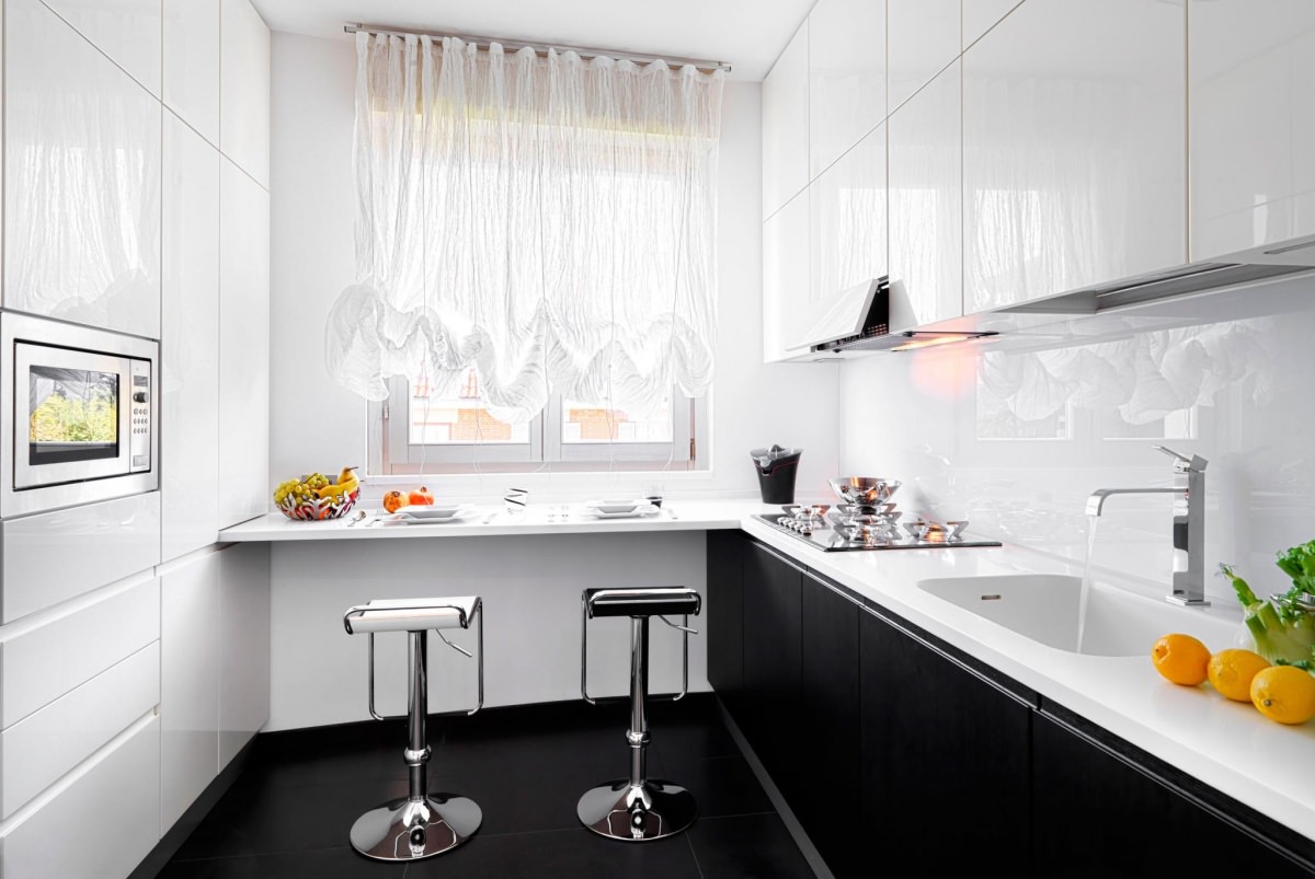 A peninsular view of the kitchen is the most common accommodation option.The tabletop is perpendicular to the main headset, clearly dividing the room into two functional zones.