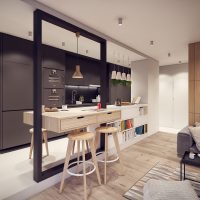 The bar counter is a great solution to increase practicality. With its help, you can optimize the space and divide it into functional zones. If you approach the choice of such an element responsibly - it will become an indispensable functional interior solution.