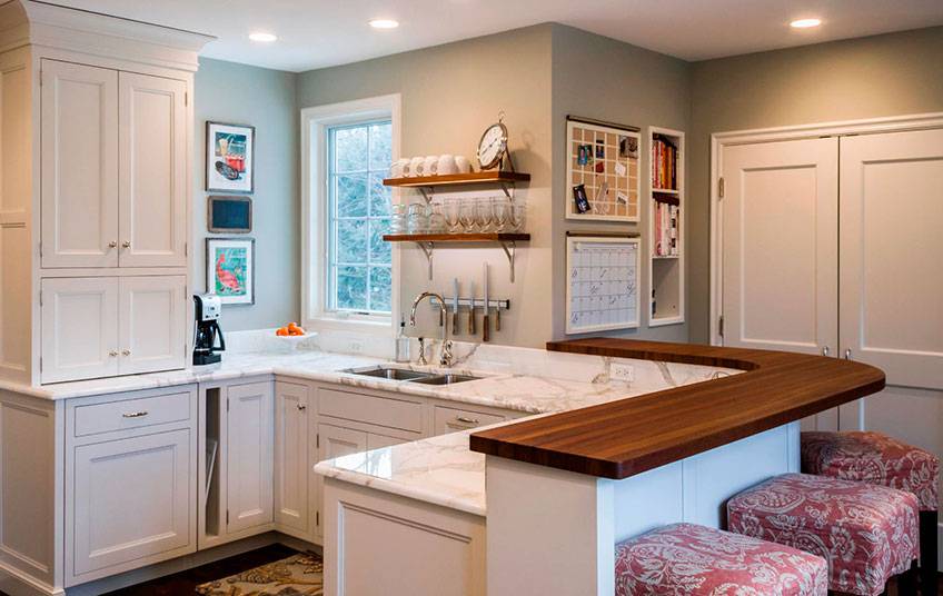 To make the bar look beautiful and fulfill its function, its placement should be thought out in advance. There are several layout options for a kitchen with a breakfast bar.