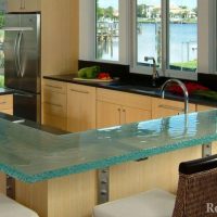 Glass racks give ease to space, are fireproof and resistant to moisture. However, such countertops are impractical because glass can break. Another disadvantage is the high cost.