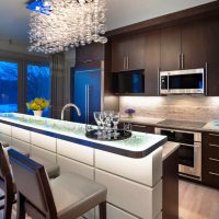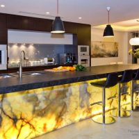 Today the market offers a huge selection of different options for bar counters and surfaces. It can be built into any element of the kitchen, or be a separate element. The design of such a room is always stylish and extraordinary. There are 5 main types of racks: