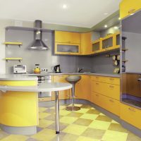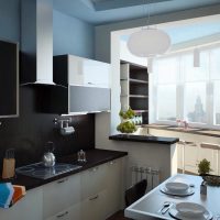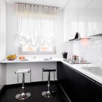 In a combined version is a continuation of the kitchen. It can extend the working area, or be perpendicular to the main kitchen elements. In small rooms use the L-shaped option. The height of the countertop is usually equal to the height of the element that it continues. It is convenient when used as an extension of the work surface.